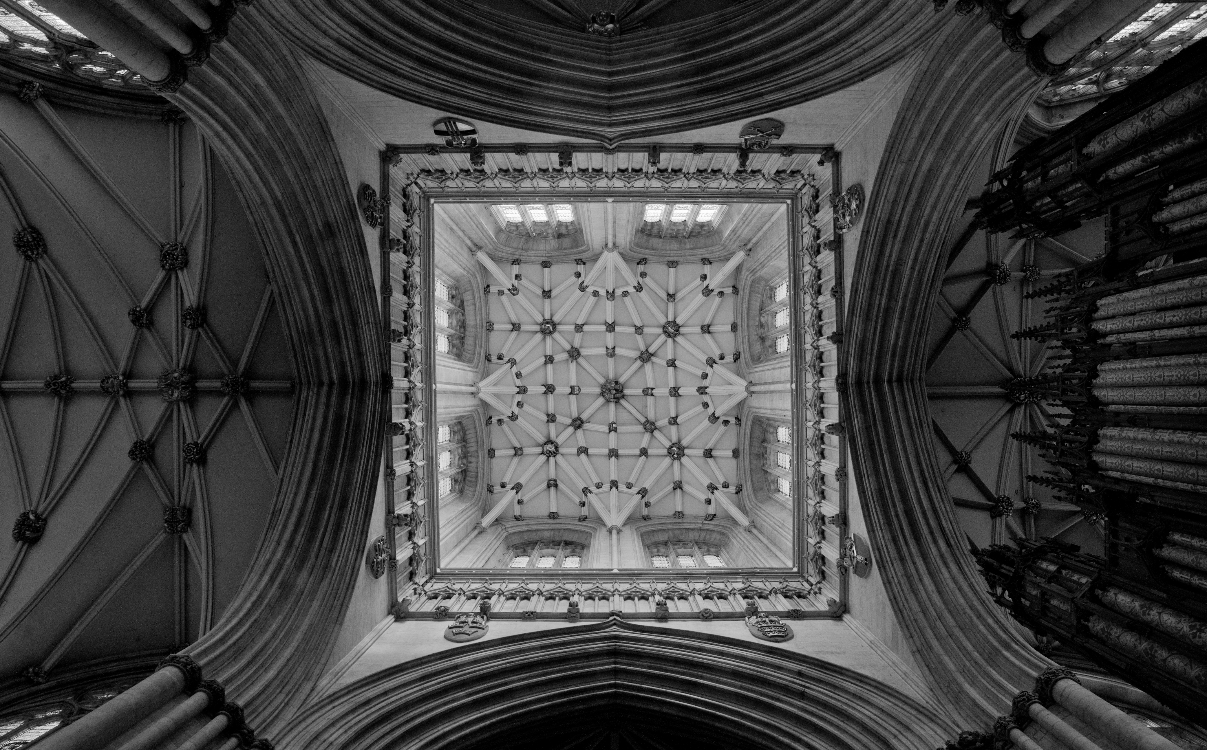 The interior of the central tower of York Minster. The cathedral was constructed between 1230 and 1472.