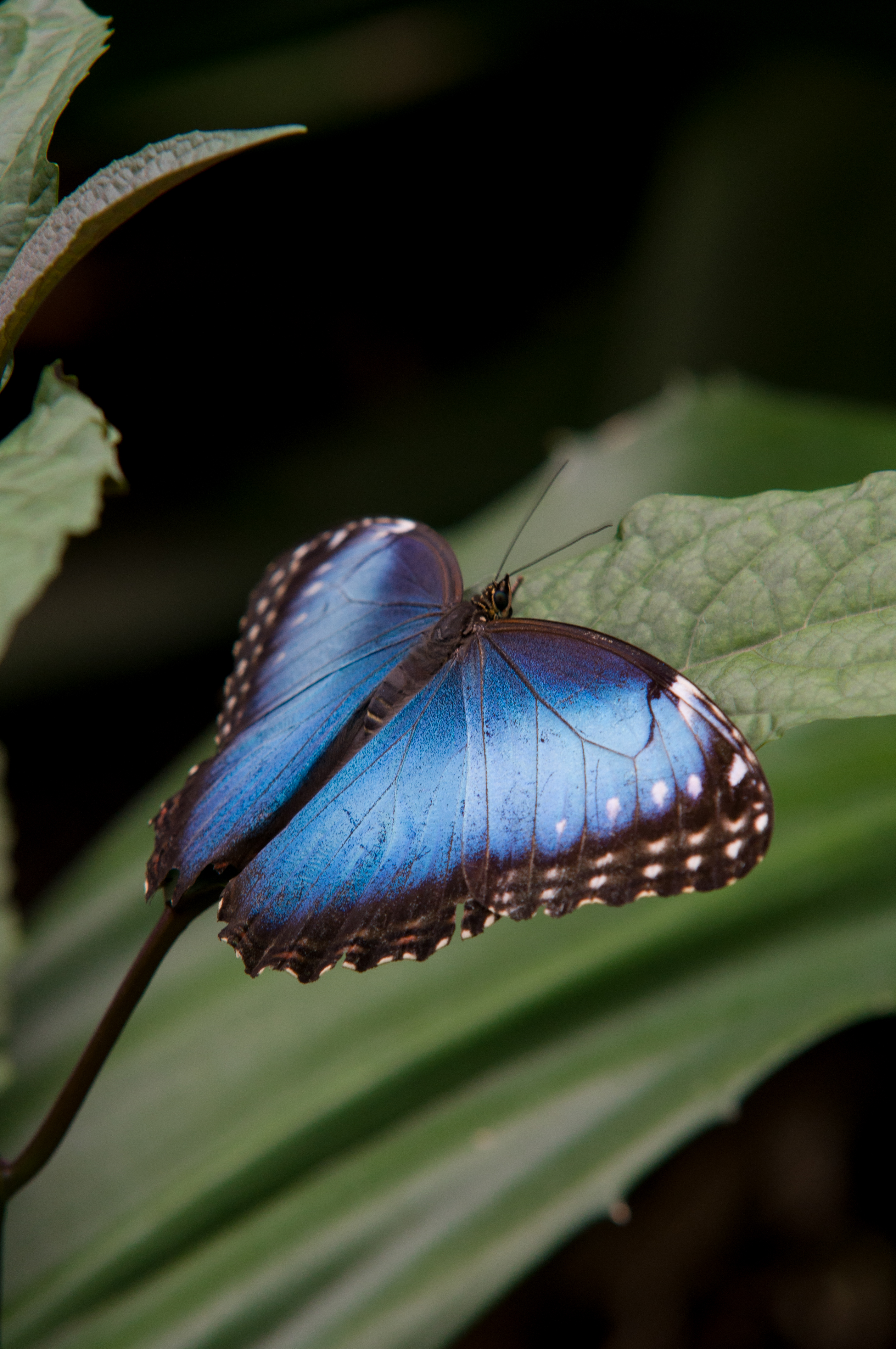 A Common Morpho butterfly (Morpho peleides) in Artis' butterfly pavilion.
